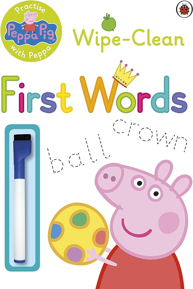 Practise lots of new first words with Peppa Pig and friends in this colourful wipe-clean activity book!